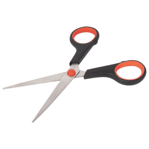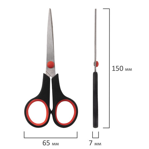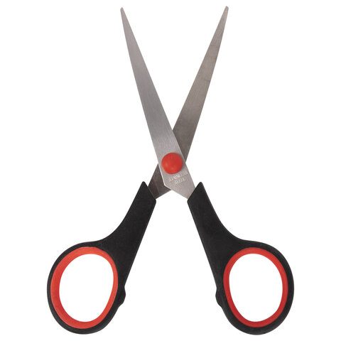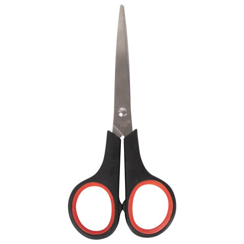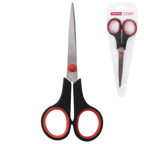 Ножницы 155 мм, бюджет, резиновые вставки, черно-красные, STAFF ECO, 238943