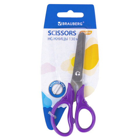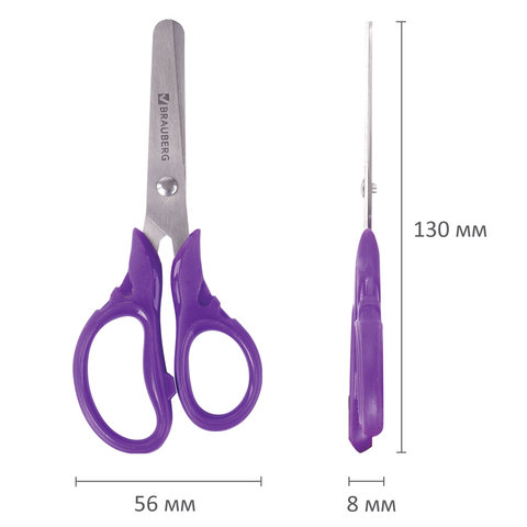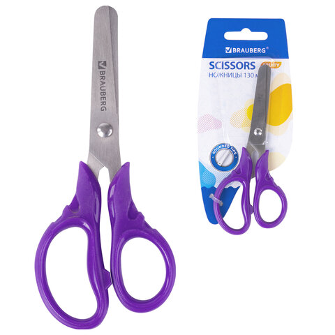 Ножницы BRAUBERG KIDS 130 мм, ручки лавандовые, закругленные лезвия с линейкой, 274061