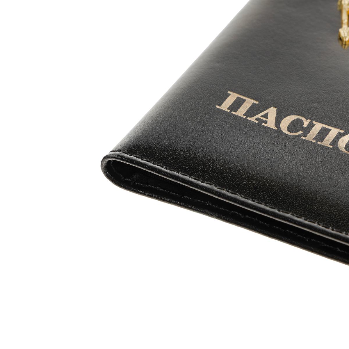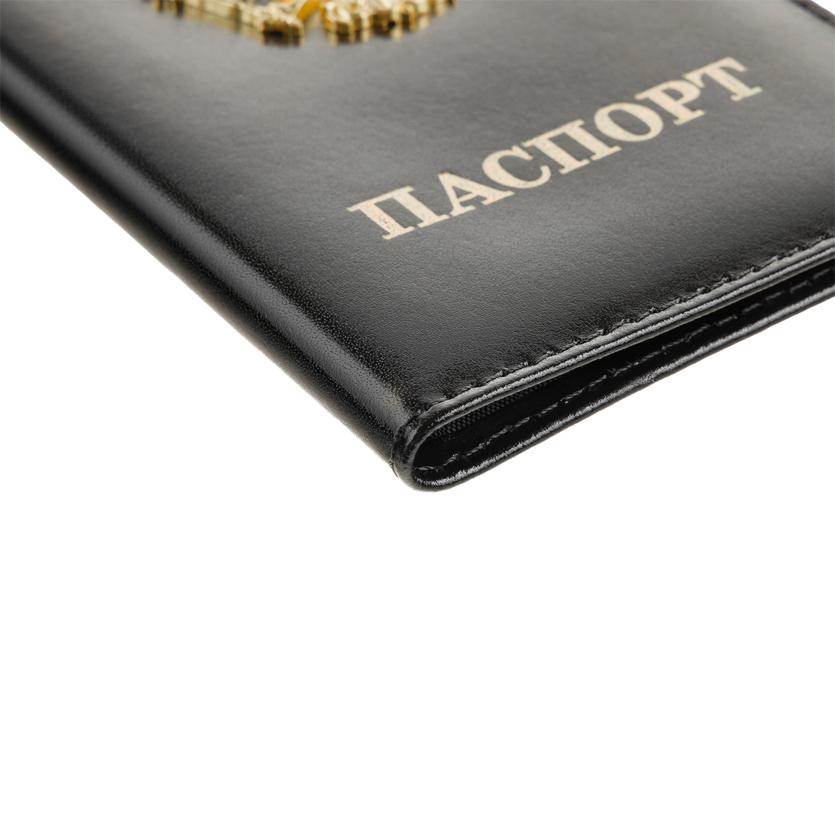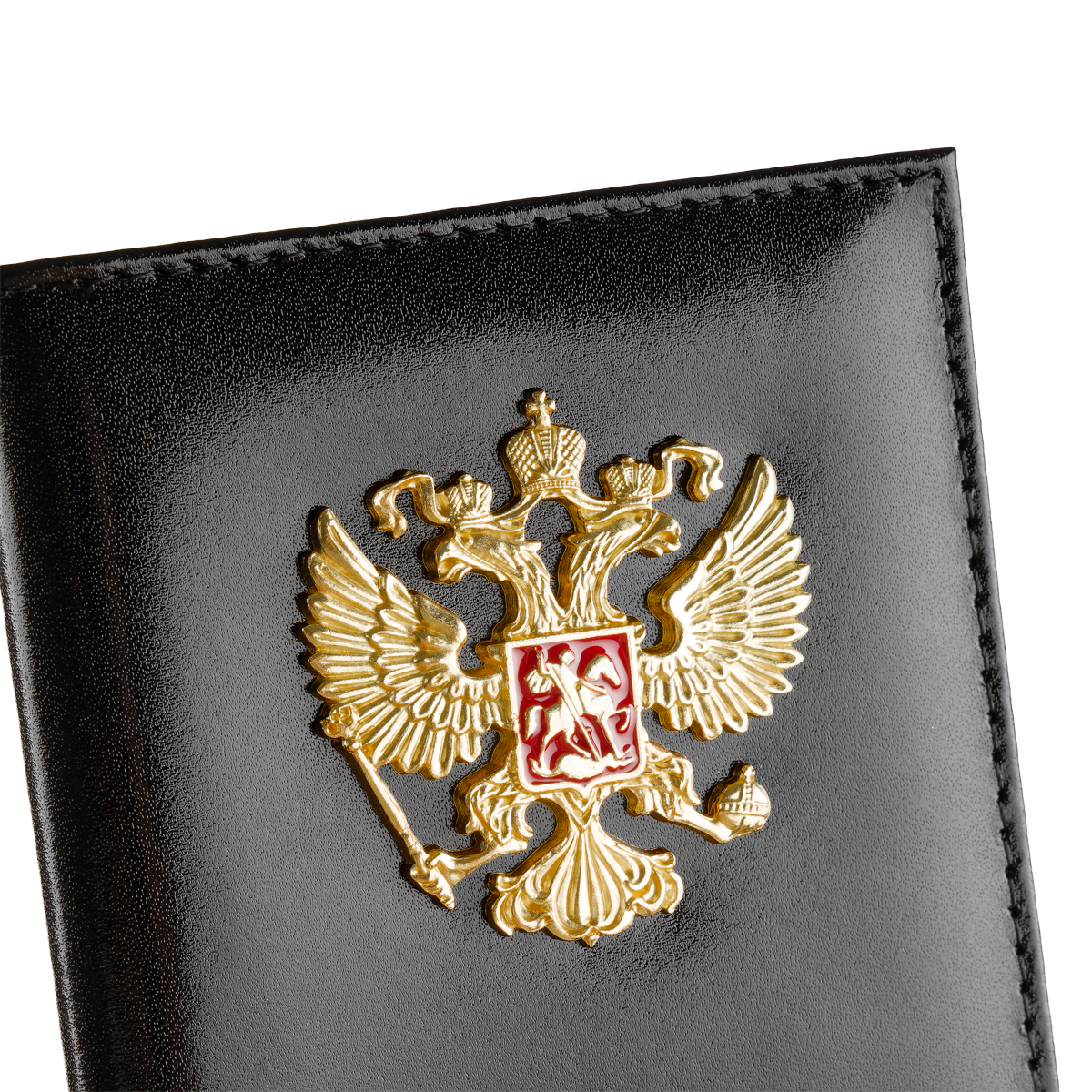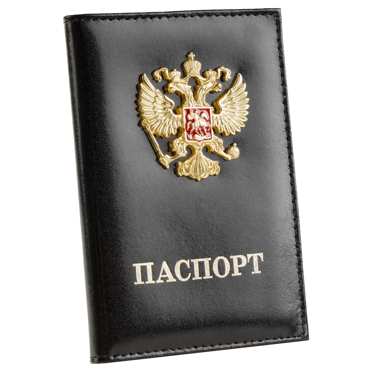 Обложка для паспорта OfficeSpace изготовлена из качественной натуральной кожи черного цвета. Лицевая сторона оформлена золотым металлическим шильдом Герб и тиснением "ПАСПОРТ". Благодаря обложке документы будут защищены от пыли, изломов, влаги.