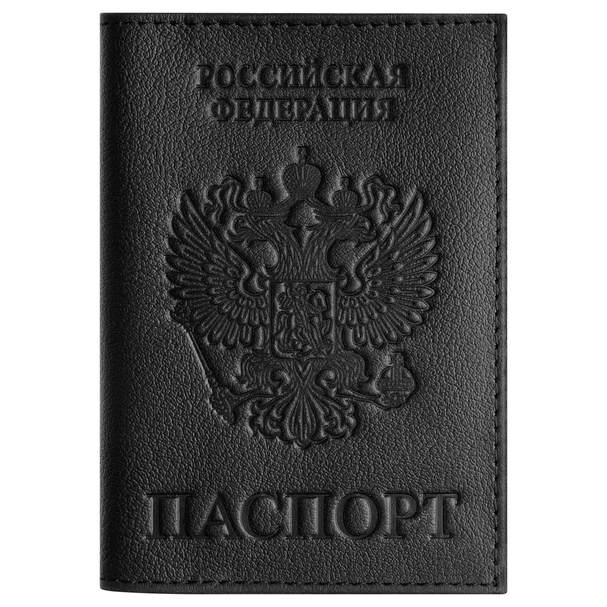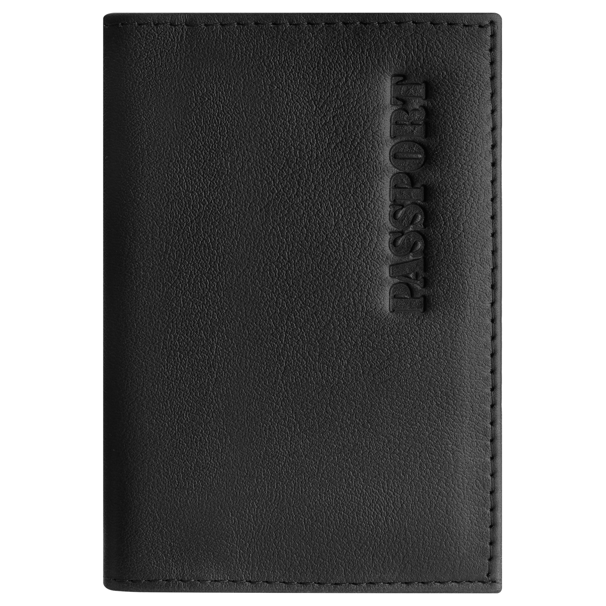 Обложка для паспорта OfficeSpace натуральная кожа Орфей, текстура гладкая, тиснение "PASSPORT", черный