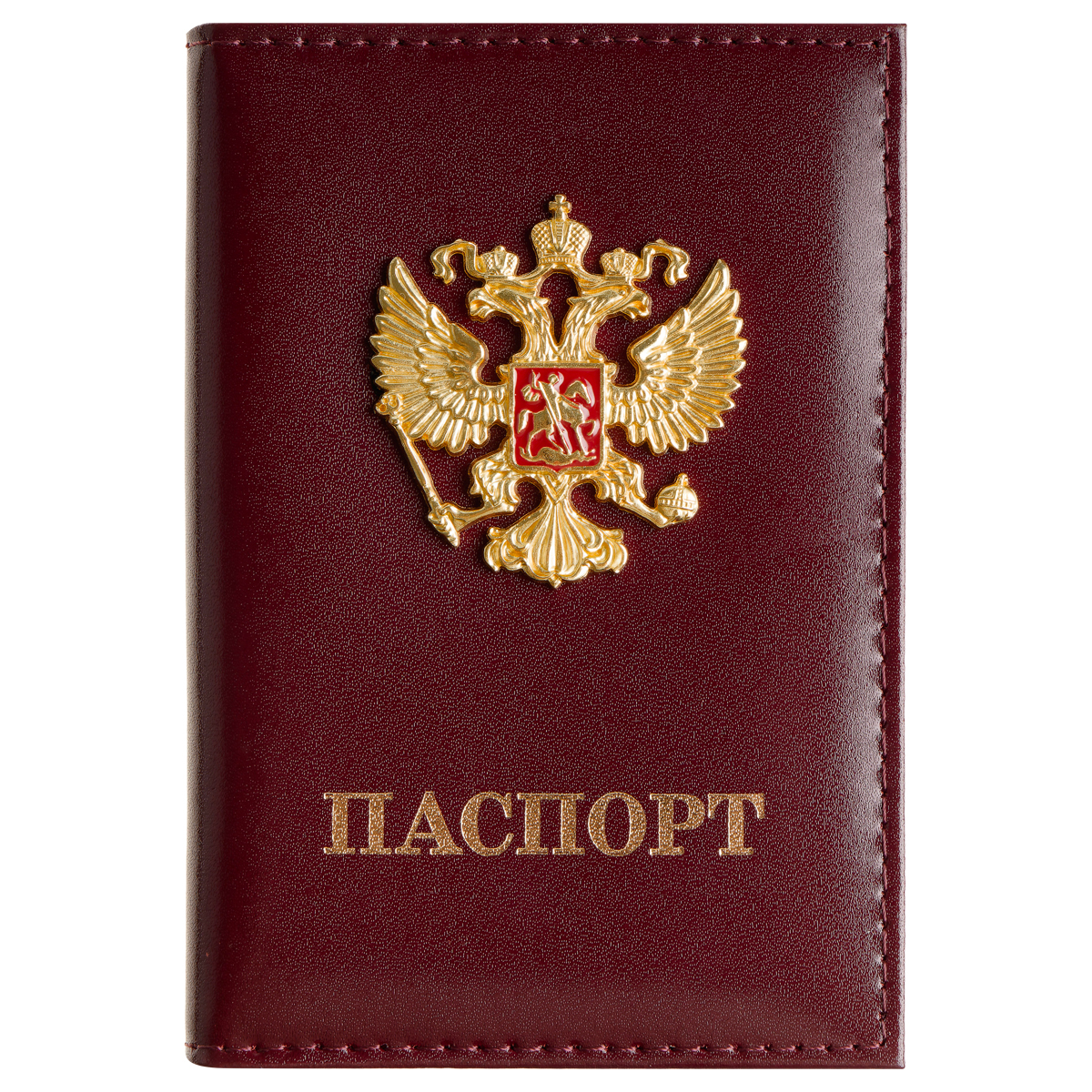 Обложка для паспорта OfficeSpace натуральная кожа Шик, текстура гладкая, тиснение "ПАСПОРТ", подклад текстиль, бордовый, металлический шильд Герб