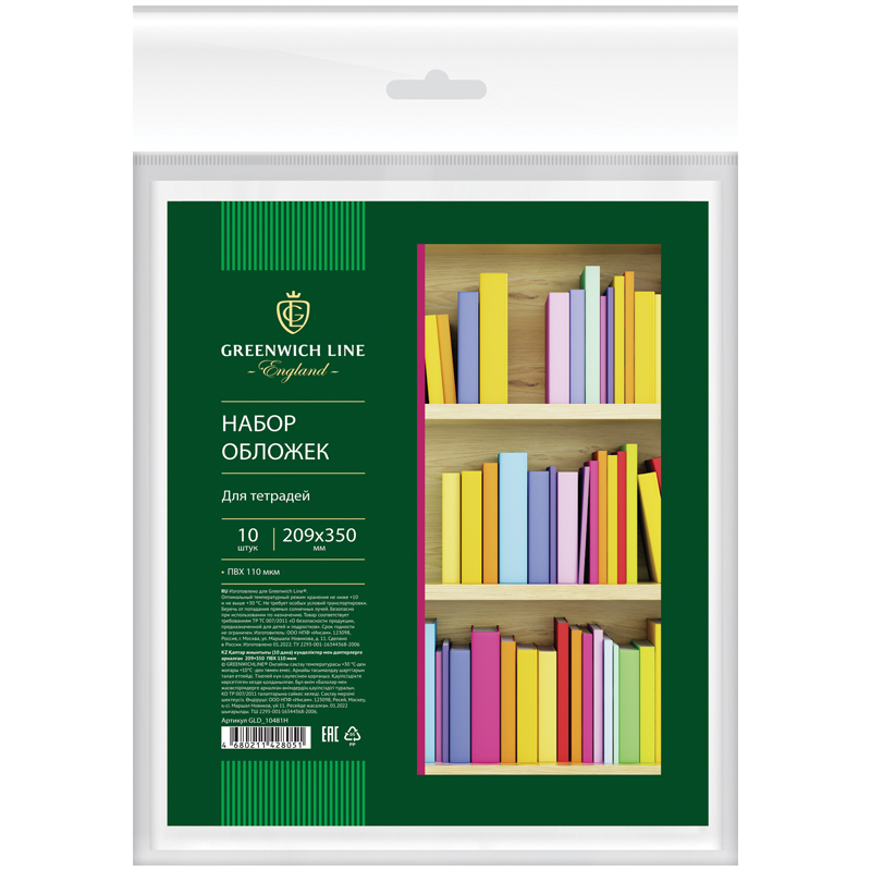 Набор обложек (10шт.) 209*350 для тетрадей и дневников, ПВХ 110мкм, Greenwich Line