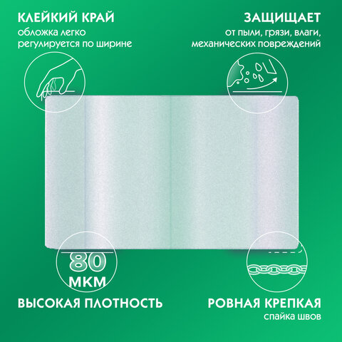 Прозрачные плотные обложки ПИФАГОР для тетрадей и учебников начальных классов изготовлены из полипропилена (ПП) толщиной 80 мкм. Благодаря КЛЕЙКОМУ КРАЮ обложка легко регулируется по ширине.