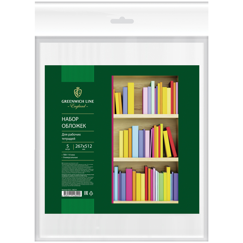 Набор обложек (5шт.) 267*512 для учеб.и раб.тетр"Школа России"1-4кл,учебн.стар.кл.издат.Просвещение,Экзамен,ПВХ 110мкм, унив Greenwich Line