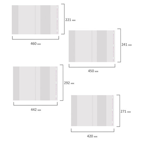 В наборе: 221х460 мм - 2 шт., 241х450 мм - 3 шт., 271х420 мм - 8 шт., 292х442 мм - 2 шт.