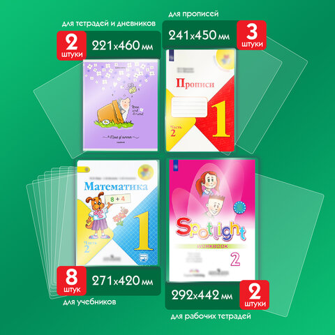 Набор обложек (10шт.) 270*550 для учеб. и раб.тетр "Школа России"1-4кл, учебн.стар. кл.издат.Просвещение,Экзамен,ПВХ 120мкм, унив. ,ArtSpace