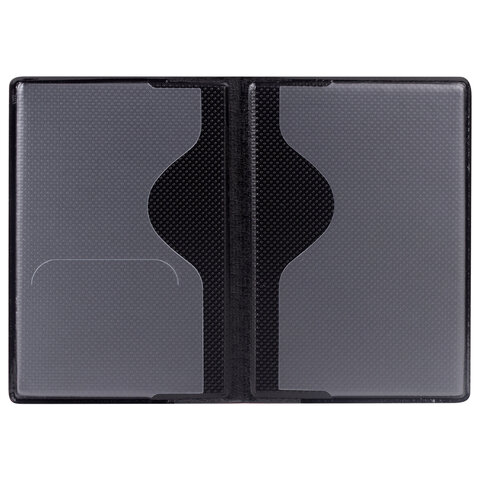 Модель выполнена из мягкого полиуретана светло-серого цвета, украшена гербом Российской Федерации и тисненой надписью "Паспорт". На внутреннем развороте расположены два кармана из прозрачного пластика. Благодаря компактным размерам 97х138 мм удобно всегда носить с собой.
