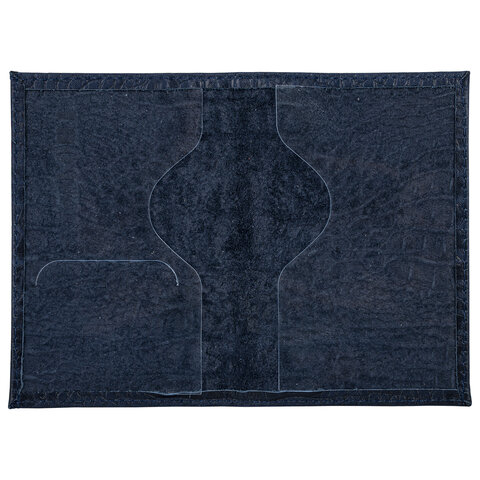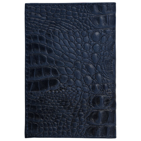 Модель выполнена из натуральной кожи с отделкой под кожу каймана глубокого темно-синего цвета, что подчеркнет стиль и изысканный вкус обладателя. Украшена тисненой надписью "PASSPORT", края прострочены. На внутреннем развороте расположены два кармана из прозрачного пластика. Упакована в пакет с европодвесом.