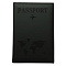 Модель выполнена из экокожи черного цвета с эффектом "soft touch" и украшена тиснением в виде надписи "Passport", фигуры самолета и карты мира. Имеет простроченные края и мягкую изолоновую вставку. На внутреннем развороте расположены два кармана из прозрачного пластика. Благодаря компактным размерам 98х141 мм документ в обложке удобно носить с собой.