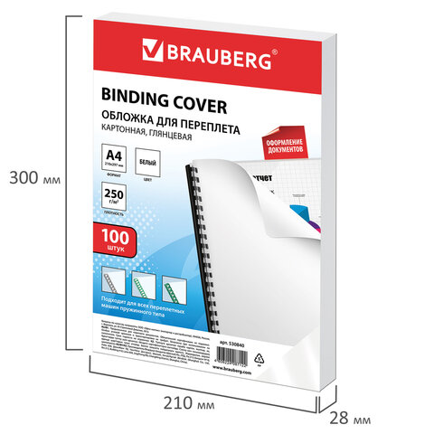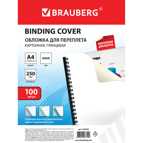Обложки для переплета BRAUBERG придадут документам эстетичный внешний вид и защитят от повреждений. Предназначены для переплета документов брошюровщиком с помощью пластиковых и металлических пружин. Актуальны для создания деловых брошюр.