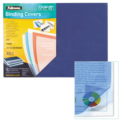 Обложки пластиковые для переплета БОЛЬШОЙ ФОРМАТ А3, КОМПЛЕКТ 100 шт., 200 мкм, прозрачные, FELLOWES, FS-53764