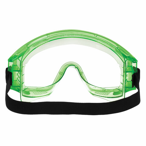 Мягкий корпус из ПВХ. Регулируемая наголовная лента. Обеспечивают защиту глаз от абразива, капель жидкостей (в т.ч. химических растворов), УФ-излучения, от механического повреждения высокоскоростными летящими частицами (кроме мелких частиц и пыли).