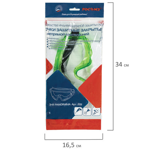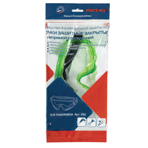 Очки защитные закрытые РОСОМЗ ЗП2 Panorama, прозрачные, прямая вентиляция, поликарбонат, 30211