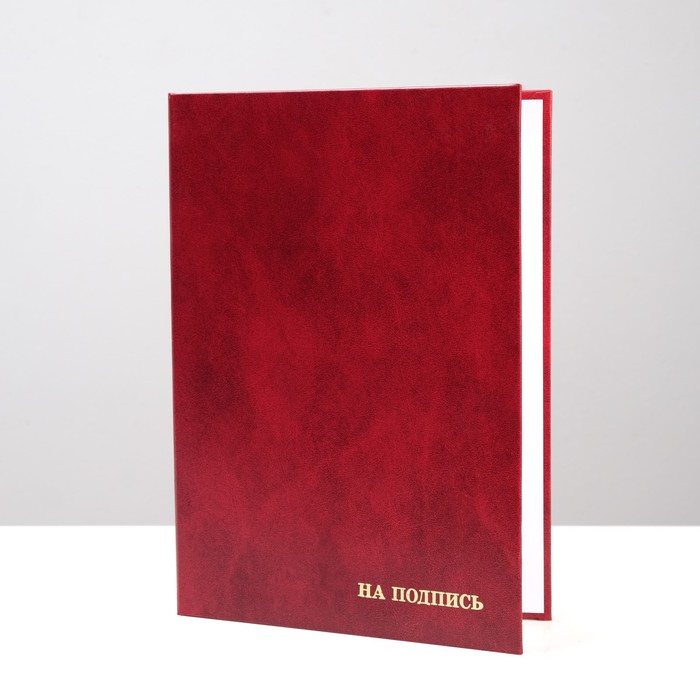Папка адресная "На подпись" бумвинил, бордовая с разводами, А4