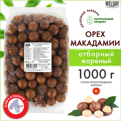 Макадамия в скорлупе с ключом WELDAY 1 кг, 622475