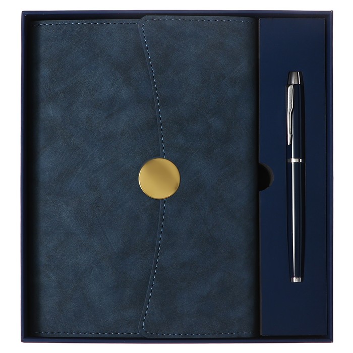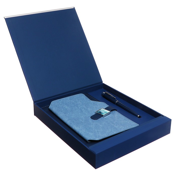 Органайзер на кольцах А6+, 80 листов, кожзам, c клапаном, линия, с ручкой, в подарочной коробке, синий
