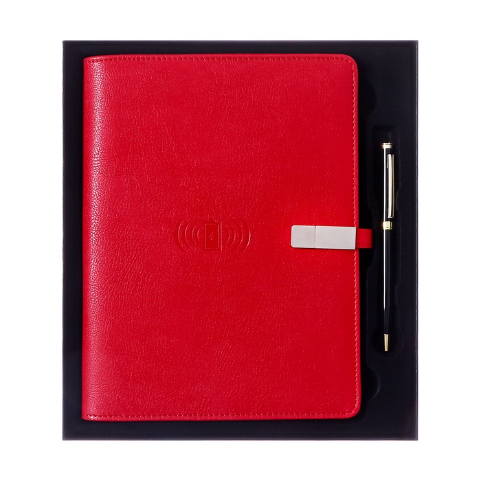 Органайзер на кольцах,ПВХ,А5,140 л, клетка,с ручкой,подар. короб,флешка,зарядка Красный