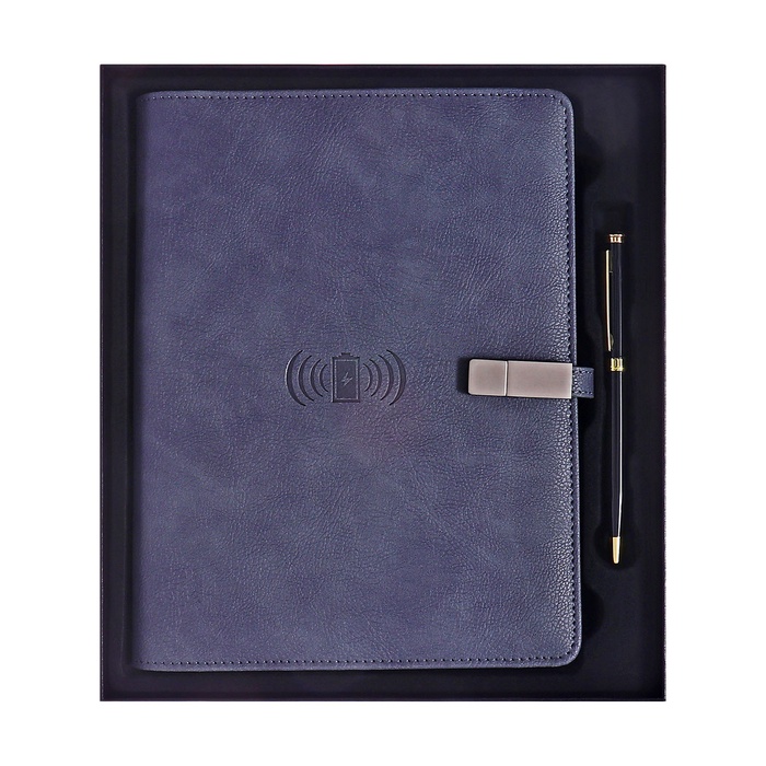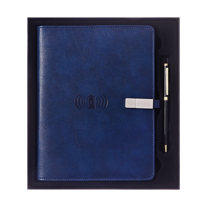 Органайзер на кольцах,ПВХ,А5,140 л, клетка,с ручкой,подар. короб,флешка,зарядка Синий