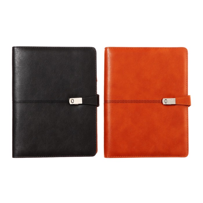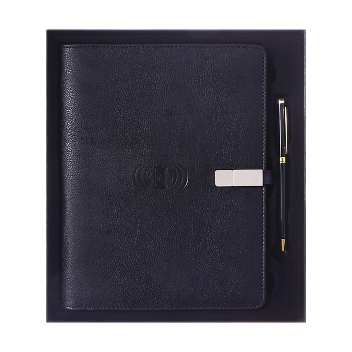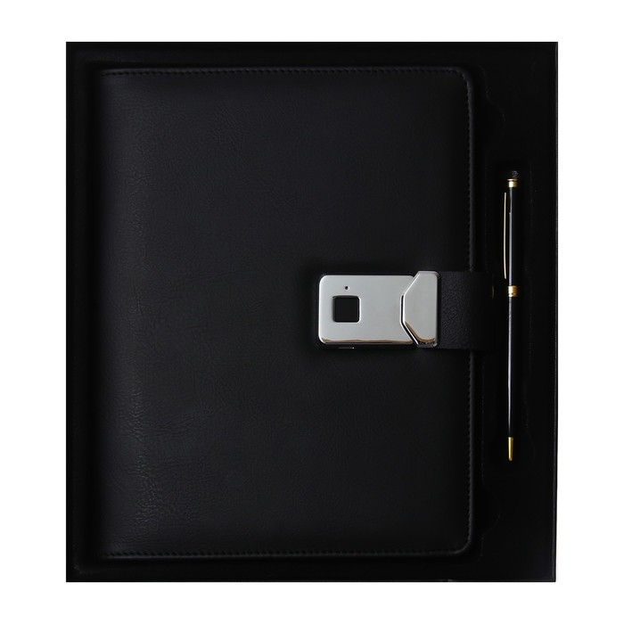 Органайзер на кольцах А5, 140 листов, в клетку, с ручкой, сканером пальца, зарядкой в подарочной коробке, обложка ПВХ, чёрный