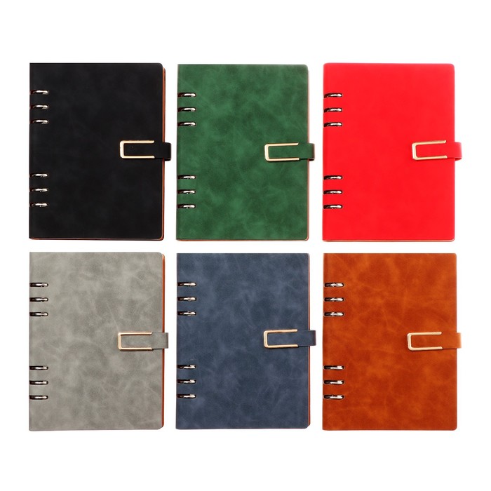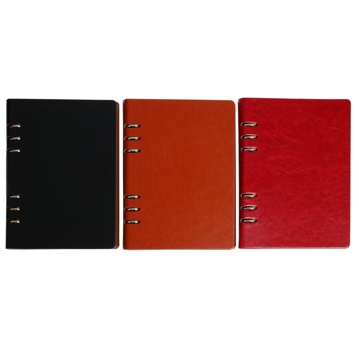 Органайзер на кольцах А5, 90 листов, в линейку, обложка кожзам, с резинкой для ручки, МИКС