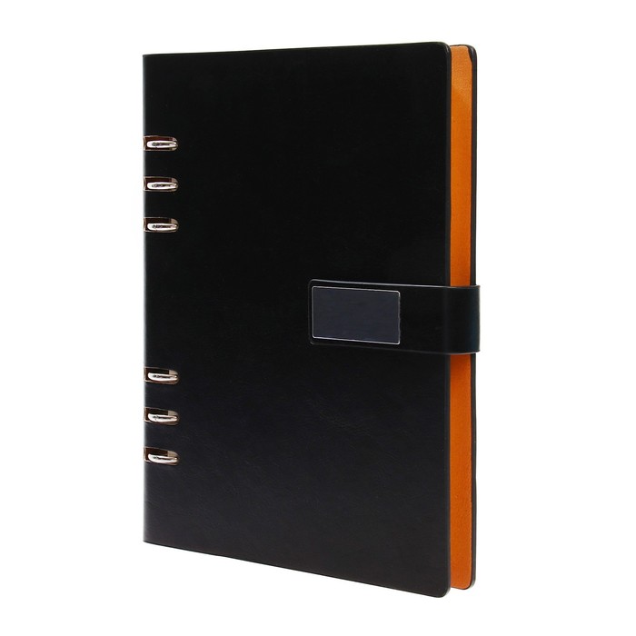 Органайзер на кольцах,ПВХ,А5,140 л, клетка,с ручкой,подар. короб,флешка,зарядка Чёрный