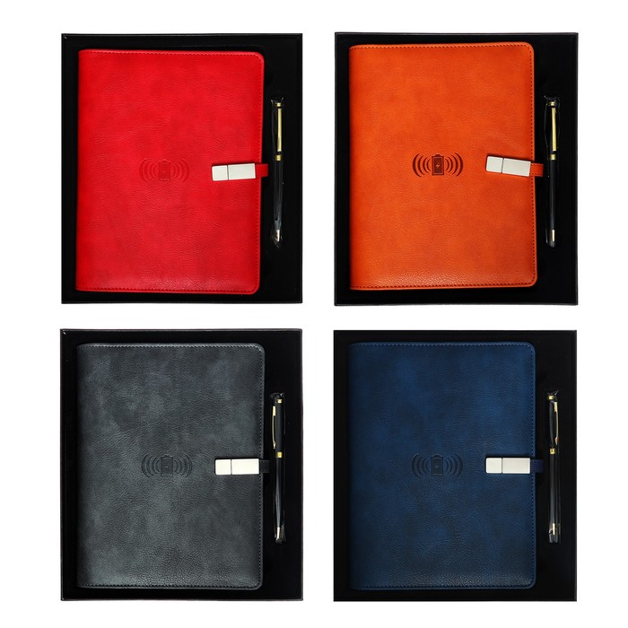 Органайзер на кольцах А5, 140 листов, в клетку, с ручкой, флешкой, зарядкой, подарочная коробка, обложка ПВХ, МИКС