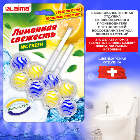 Туалетный блок освежитель унитаза подвесной 4шт*50г LAIMA, "Лимонная Свежесть 3 в 1", 608994