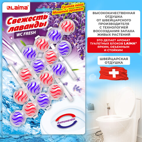 Туалетный блок LAIMA обладает ярким ароматом и сильной формулой, очищающей унитаз при каждом смывании.