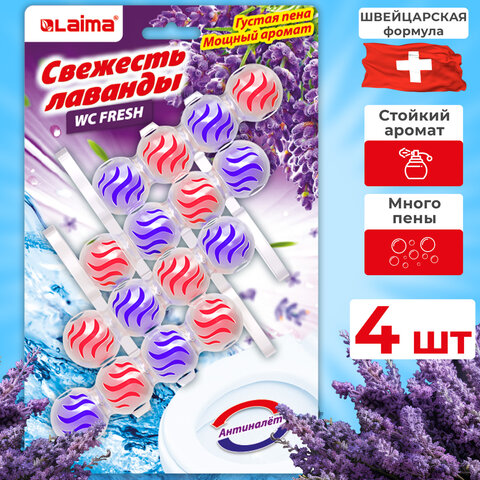 Туалетный блок освежитель унитаза подвесной 2шт*50г LAIMA, "Свежесть Лаванды 3 в 1", 608993