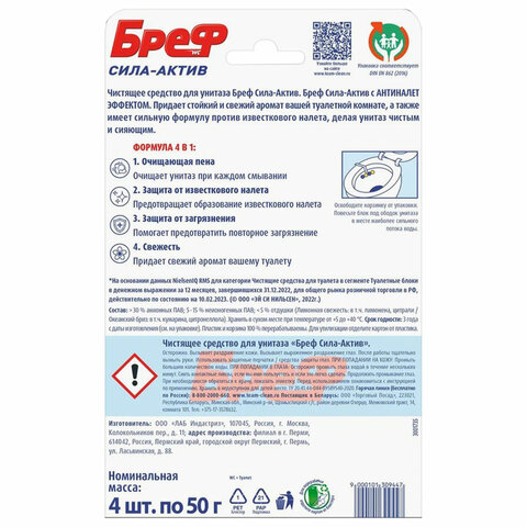 БРЕФ Сила-Актив придает антиналет эффект при каждом смывании.