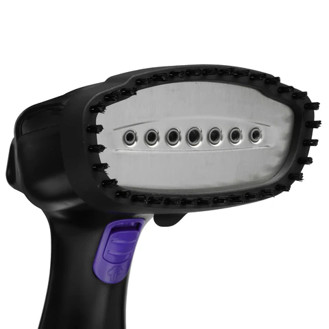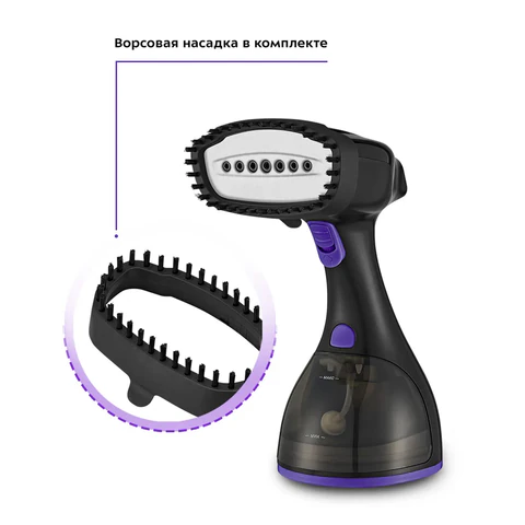 Kitfort КТ-9121-1 оснащен металлической нагревающейся подошвой, устойчивой к появлению коррозийного налета. Температура пара достигает 120 °C. Модель имеет кнопку для постоянной подачи пара. Ворсовая насадка служит для удаления загрязнений с обивки мебели или предметов гардероба. Предусмотренная конструкцией ручка позволяет держать прибор правой или левой ладонью.
