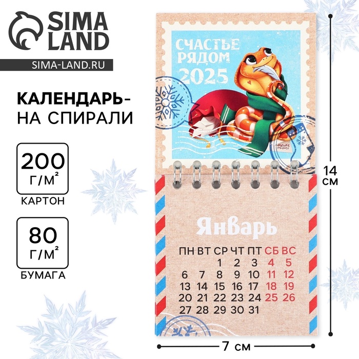 Календарь 2025 новогодний на спирали «Новый год: Счастье рядом», 7 х 7 см