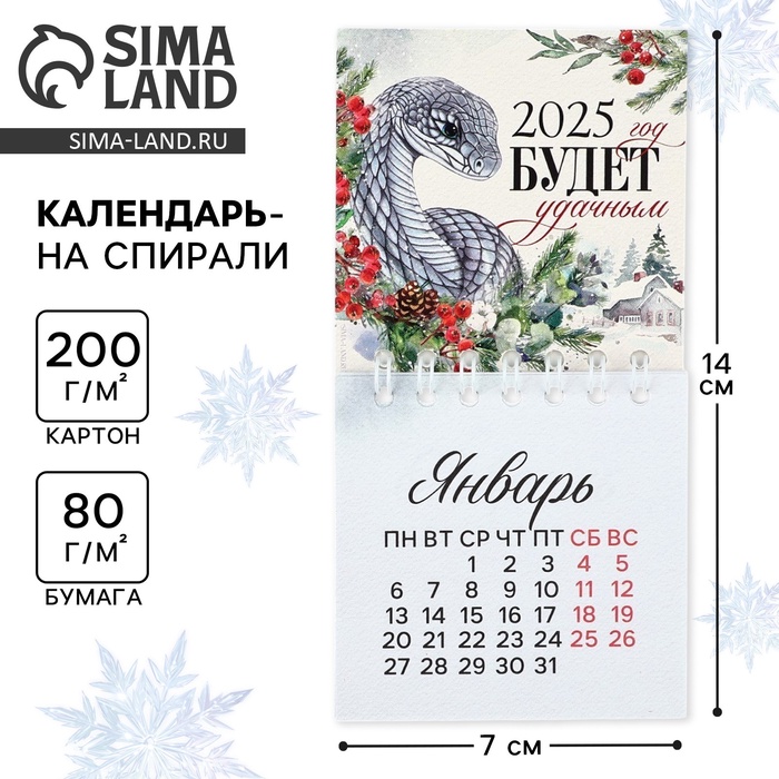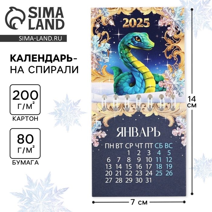 Календарь 2025 новогодний на спирали «Новый год: Зеленая змея», 7 х 7 см