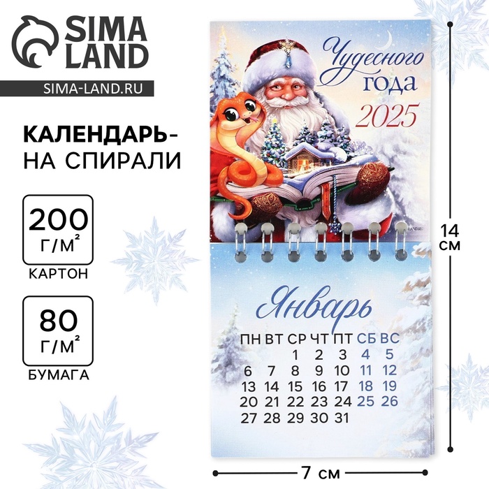 Календарь 2025 новогодний на спирали «Новый год: Чудесного года», 7 х 7 см