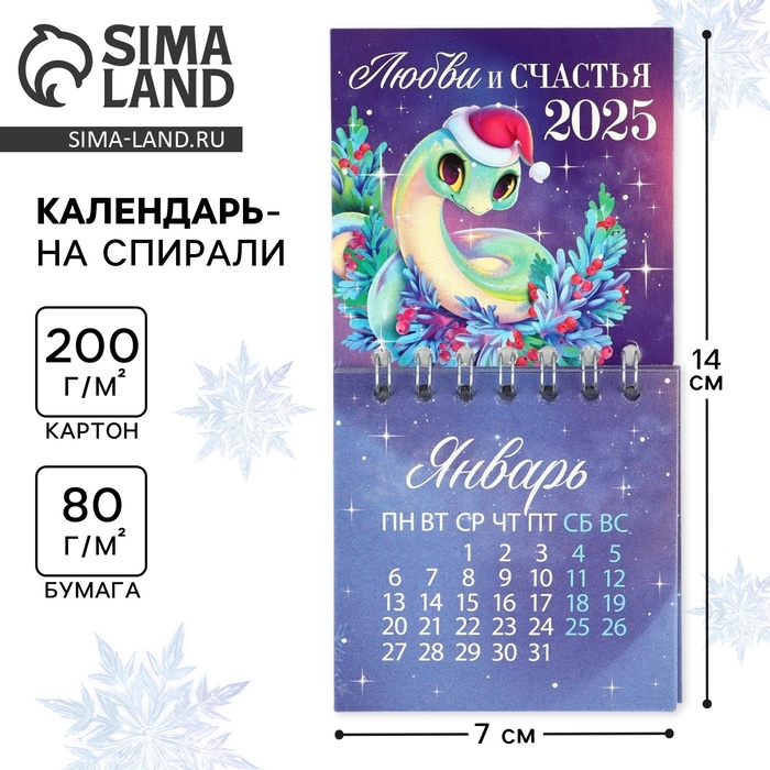 Календарь 2025 новогодний на спирали «Новый год: Любви и счастья», 7 х 7 см