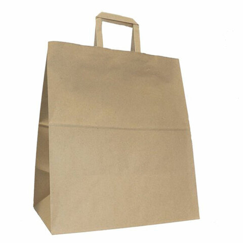 Крафт пакет бумажный 32х20х37 см, плоские ручки, плотность 70 г/м2, 606872