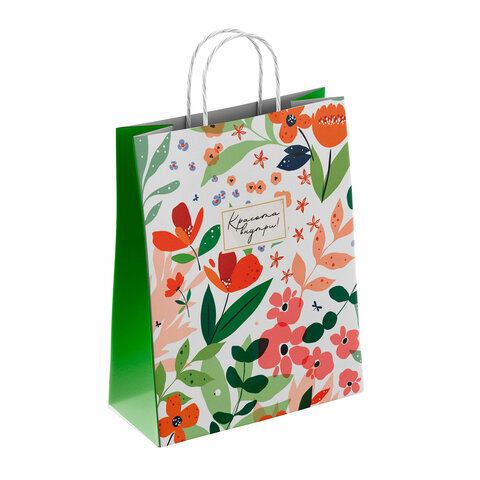 Крафт пакет бумажный Красота внутри 26х15х35см с кручеными ручками, плотность 100гр/м, 113563