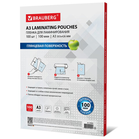 Пленка для ламинирования BRAUBERG надежно защитит документы от влаги, пыли, воздействия УФ-лучей и других внешних факторов.