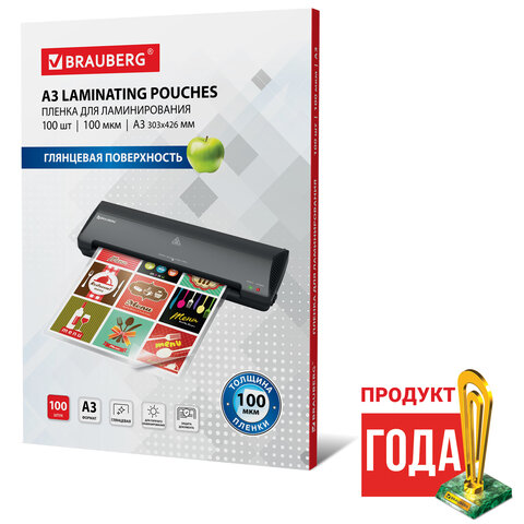 Пленка для ламинирования BRAUBERG формата А3 (303х426 мм) имеет уникальный состав: полиэтилентерефталат (PET), этиленвинилацетат (EVA), полиэтилен (LDPE). Промежуточный слой полиэтилена (LDPE) выступает как связующий элемент между слоями PET и EVA, служит дополнительной защитой от вероятного вытекания клея из-под пленки при ламинировании. Полиэтилен (PE) придает пакетам прочность эластичность и износостойкость. Глянцевое покрытие пленки способствует сохранению и максимальной передаче цвета ламинируемого изображения.