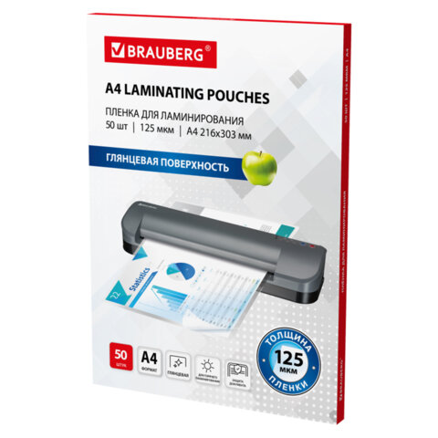Пленки-заготовки для ламинирования А4, КОМПЛЕКТ 50 шт., 125 мкм, BRAUBERG, 533115