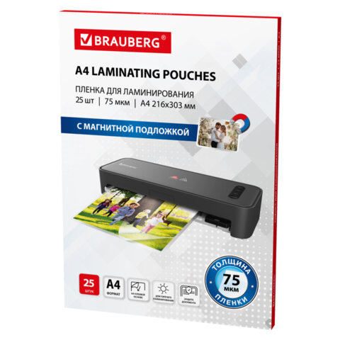 Пленки-заготовки для ламинирования МАГНИТ А4, КОМПЛЕКТ 25 шт., 75 мкм, BRAUBERG, 533122