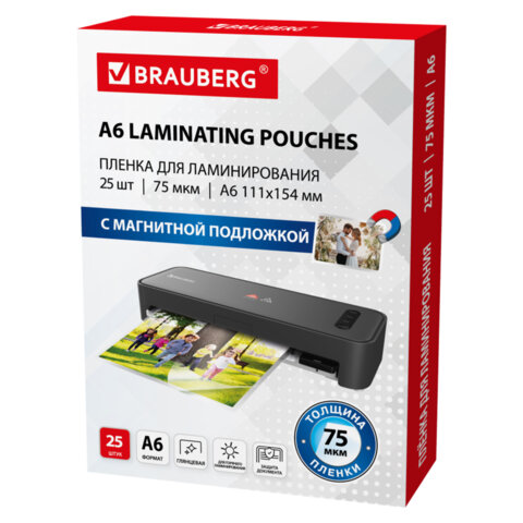 Пленки-заготовки для ламинирования МАГНИТ ДЛЯ ФОТО 111*154 А6 КОМПЛЕКТ 25 шт., 75 мкм, BRAUBERG, 533120
