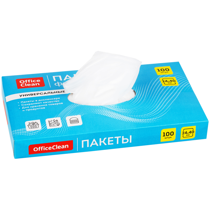 Пакеты фасовочные OfficeClean в боксе - обладают высокой эластичностью и прочностью. Универсальные, могут использоваться в магазинах розничной торговли для упаковки пищевых продуктов, а также для применения в домашних условиях.<br/>Сохраняют свежесть продуктов, предохраняют содержимое от посторонних запахов.