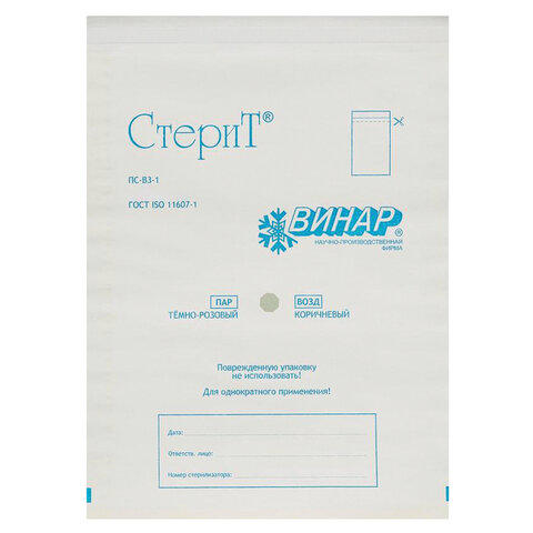 Пакет комбинированный самоклеящийся ВИНАР СТЕРИТ, комплект 100 шт., для ПАРОВОЙ/ГАЗОВОЙ стерилизации, 200х330 мм