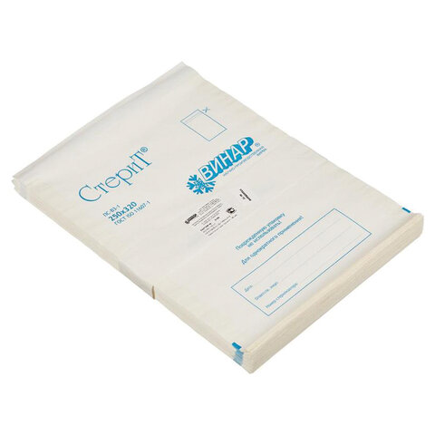 Пакет бумажный самоклеящийся ВИНАР СТЕРИТ, комплект 100 шт., для ПАРОВОЙ/ВОЗДУШНОЙ стерилизации, 250х320 мм, 17