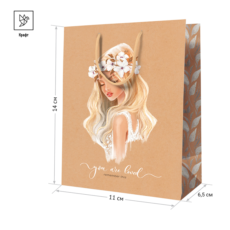 Яркий подарочный пакет ArtSpace You are loved выделит ваш презент из массы других. Оригинальный дизайн сделает подарок эффектным и запоминающимся. Размер пакета - 11*14*6,5 см, материал - крафт-бумага. <br/>Получать подарки всегда приятно, а красиво оформленные подарки приятнее вдвойне. Эксклюзивный дизайн, превосходное качество и множество отделок – черты, воплотившиеся в подарочных пакетах ArtSpace. <br/>Дарите подарки с любовью!<br/>• Размер: 11*14*6,5 см;<br/>• Ориентация: вертикальная;<br/>• Вид ручек: шнурок.