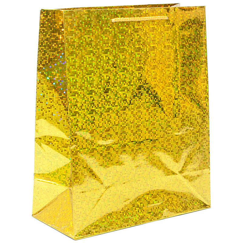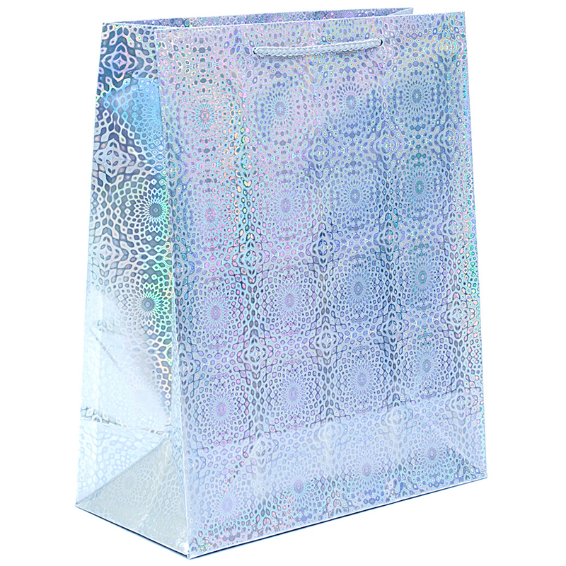 Прочный, надежный и долговечный бумажный пакет с голографией. Идеально подходит для упаковки самых разнообразных подарков. Пакет придаст презенту особое очарование и создаст хорошее настроение. Размер: 26*32*12,7см