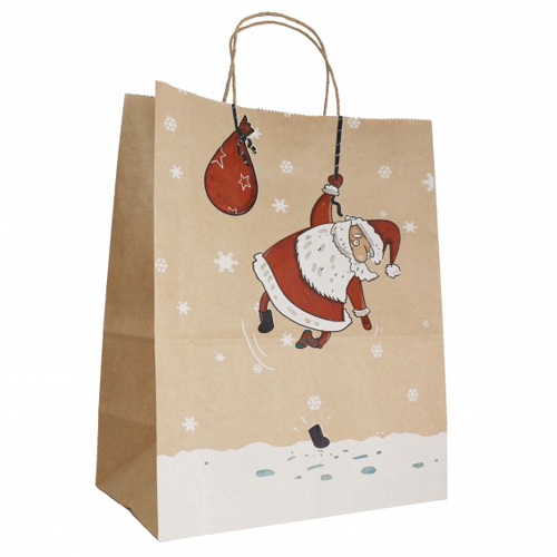 Пакет Новогодний бумажный крафт " ПЗБМ " 22*25*12см Дед Мороз, крученые ручки