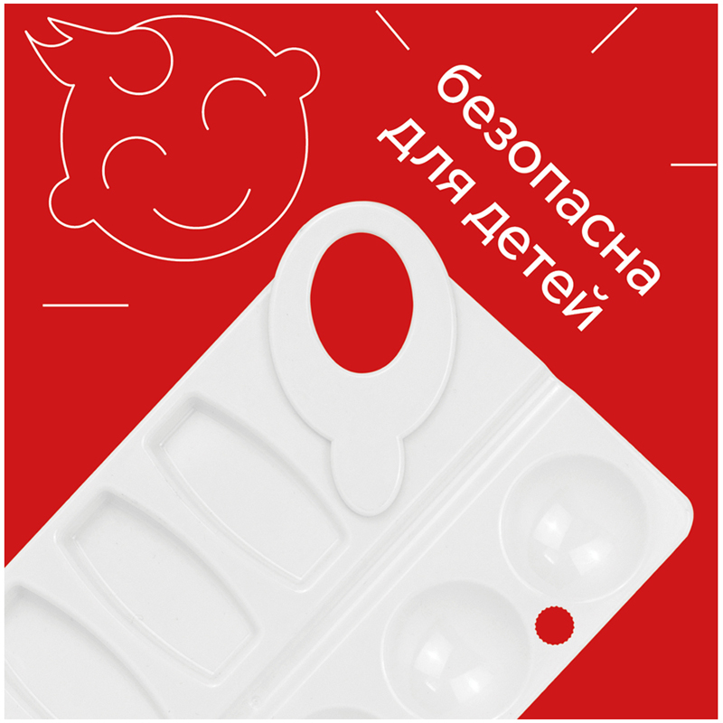 Прямоугольная палитра для рисования ГАММА – отличный инструмент для смешивания красок и получения новых тонов при создании рисунка. Она представлена в размере 20,5*11 см и имеет 10 ячеек. Художественная палитра изготовлена из пластика, у неё безупречно гладкая поверхность белого цвета. Она легко отмывается после использования. С помощью палитры дети учатся смешивать цвета и развивать цветовосприятие.