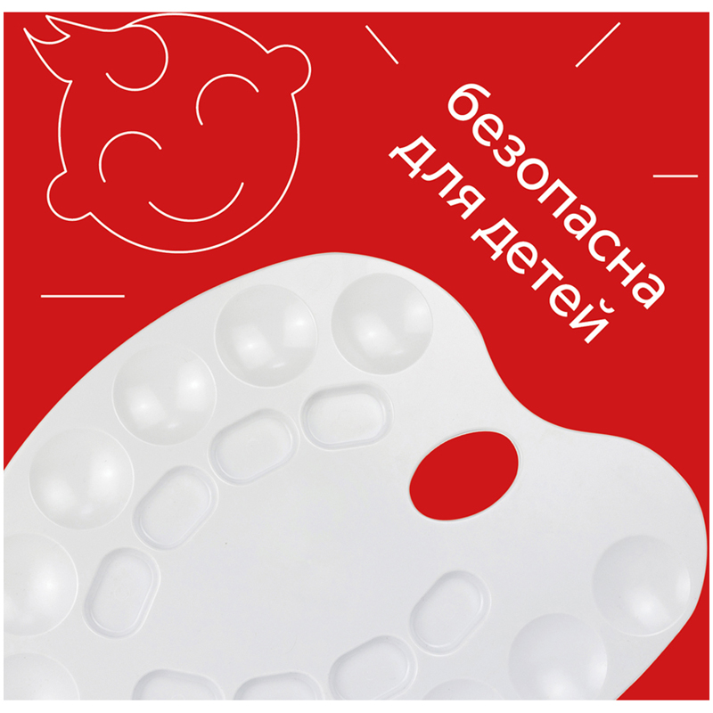 Средняя овальная палитра для рисования ГАММА – отличный инструмент для смешивания красок и получения новых тонов при создании рисунка. Она представлена в размере 24*32,2 см и имеет 20 ячеек. Художественная палитра изготовлена из пластика, у неё безупречно гладкая поверхность белого цвета. Она легко отмывается после использования. С помощью палитры дети учатся смешивать цвета и развивать цветовосприятие.